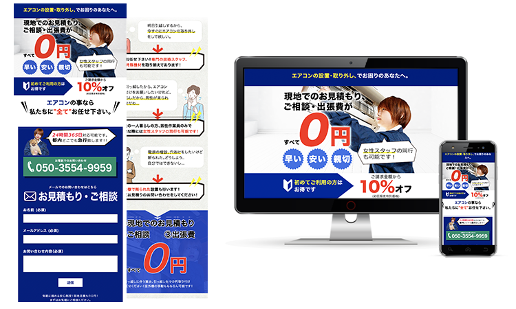 「エアコンの設置」という日常で起こりうるテーマのため、幅広いターゲットを想定しメリハリのあるデザインに。