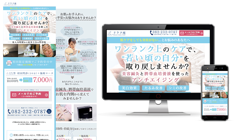 広島で美容治療や整体を行っているリラク庵様の広告運用のランディングページ制作を担当。