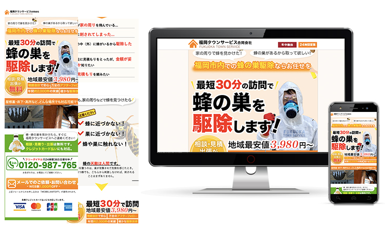 福岡”蜂の巣駆除を専門にしている「福岡タウンサービス」様のGoogle広告運用のランディングページ制作を担当