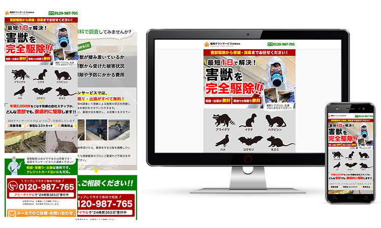 福岡で”駆除を専門にしている「福岡タウンサービス」様のGoogle広告運用のランディングページ制作を担当